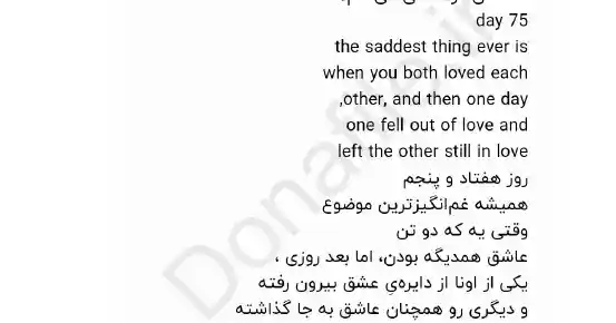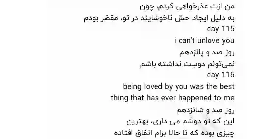 روز پنجم : این رو می دونستم که طول نمی کشه. این رو می دونستم، از همون لحظه ای که دفعه ی اول صحبت کردیم. با این وجود، باز هم امید داشتم……